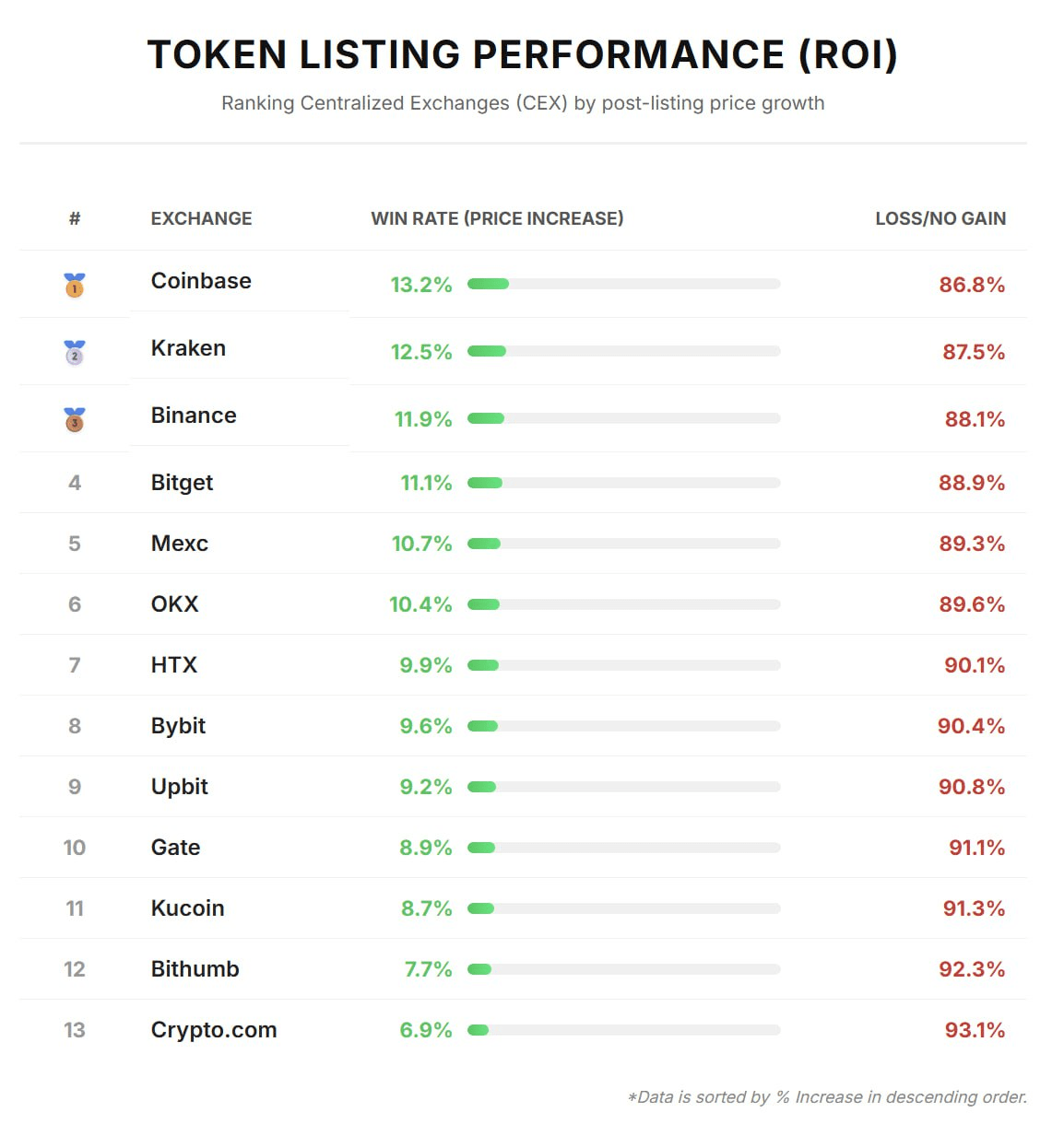 🔻 Worst Performers: Cryptocom (6.9%), Bithumb (7.7%), Kucoin (8.7%).