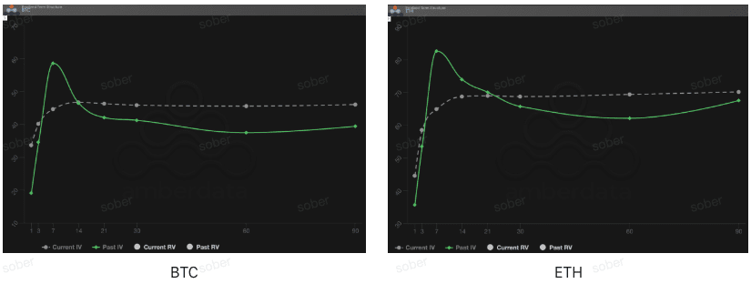 From the perspective of term structure, last week, the implied volatility curve of BTC and ETH was not in the typical Contango (near low, distant high) shape but showed a significant increase in near-term IV and a 'humped' structure with the distant end remaining high.