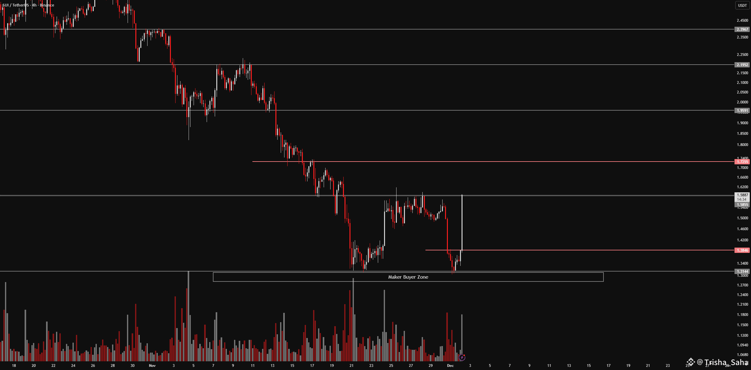 After forming a double-bottom structure around $1.34, SUI has started moving higher and is now approaching its major resistance with strong buying momentum.