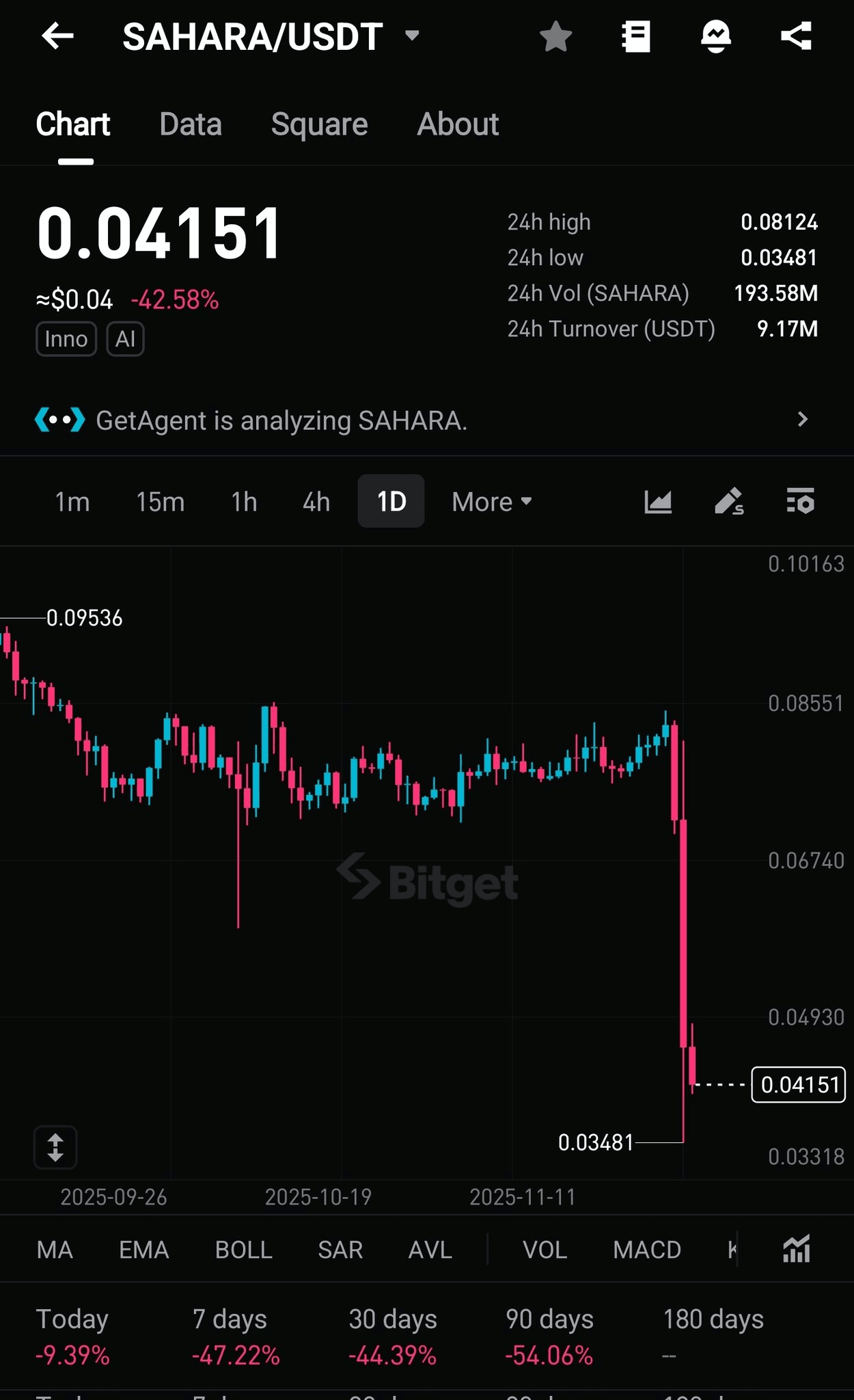 The Sahara AI token ($SAHARA) experienced a free fall on November 29, 2025, losing more than half its value in less than a day — becoming the second largest collapse this month after the Nillion token ($NIL).