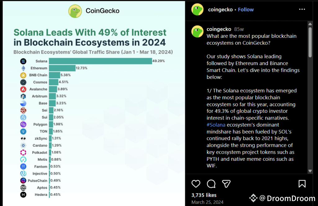 Solana has been the most visited blockchain in 2024, according to Coingecko, garnering almost half the attention as all other chains combined.