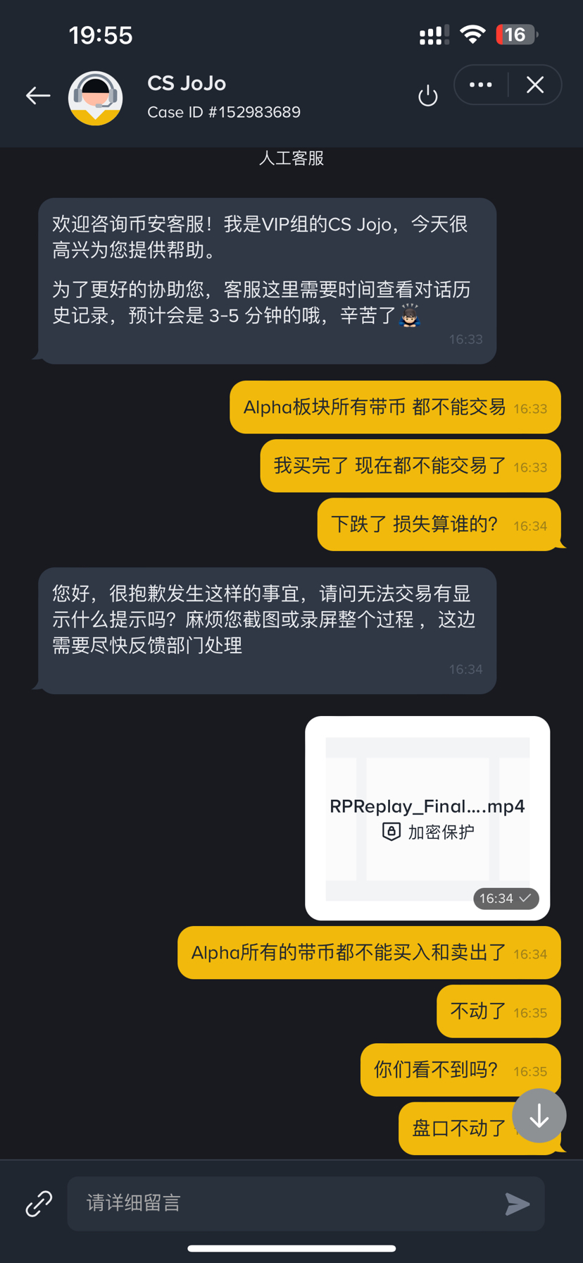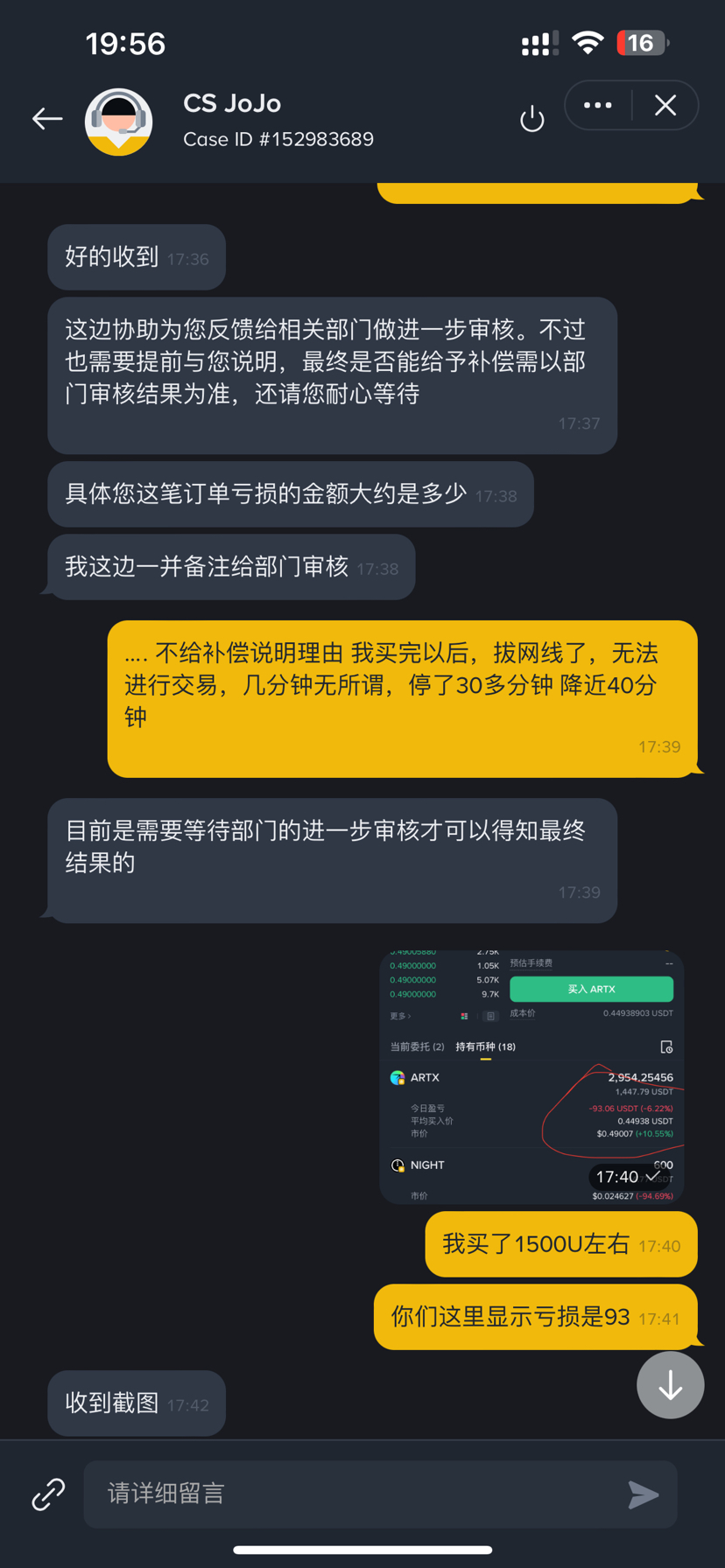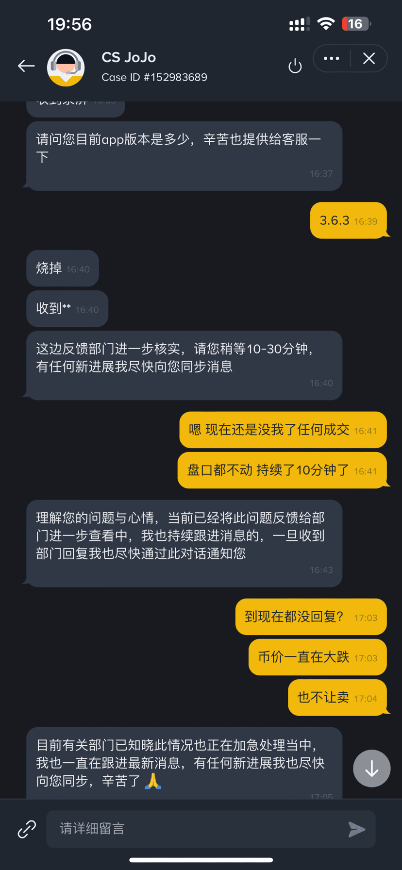 After discovering that I could not sell after my purchase, I immediately recorded a screen capture and contacted the customer service of the number one exchange in the universe, sending the screen capture over as soon as possible. Customer service, after receiving it, provided feedback to the relevant department.
