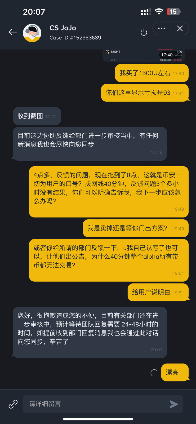 I was asked to wait 24 to 48 hours. The dear Binance customer service team has come up with a classic delayed after-sales method.