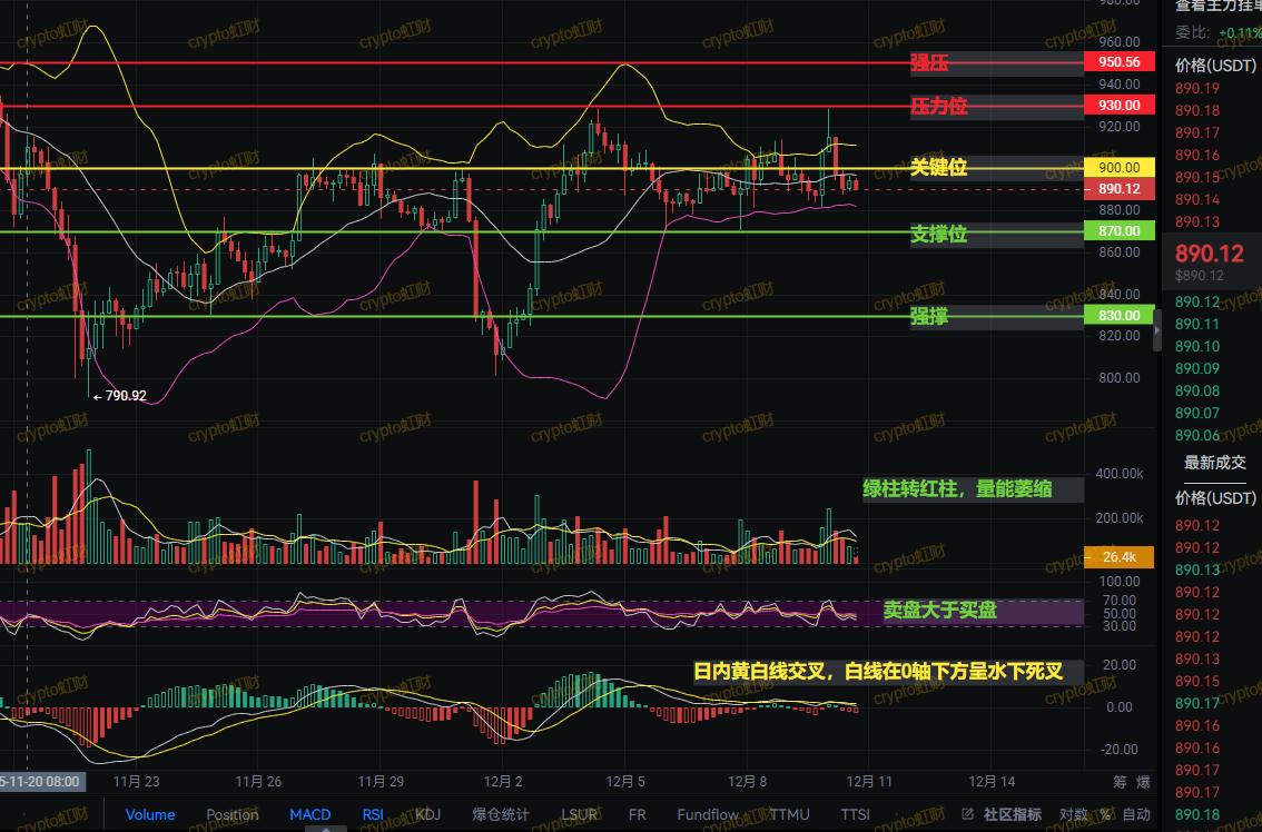 I know many are trapped above 900, but emotions are the most expensive luxury in the crypto world. What you need most now is not hope, but a warning. I will stay up all night watching the market and do something crazy at the critical point before the market starts, to give you a hint. Whether it's a full retreat or a hellish bottom-fishing, only those who come to the chat room to find me will know!