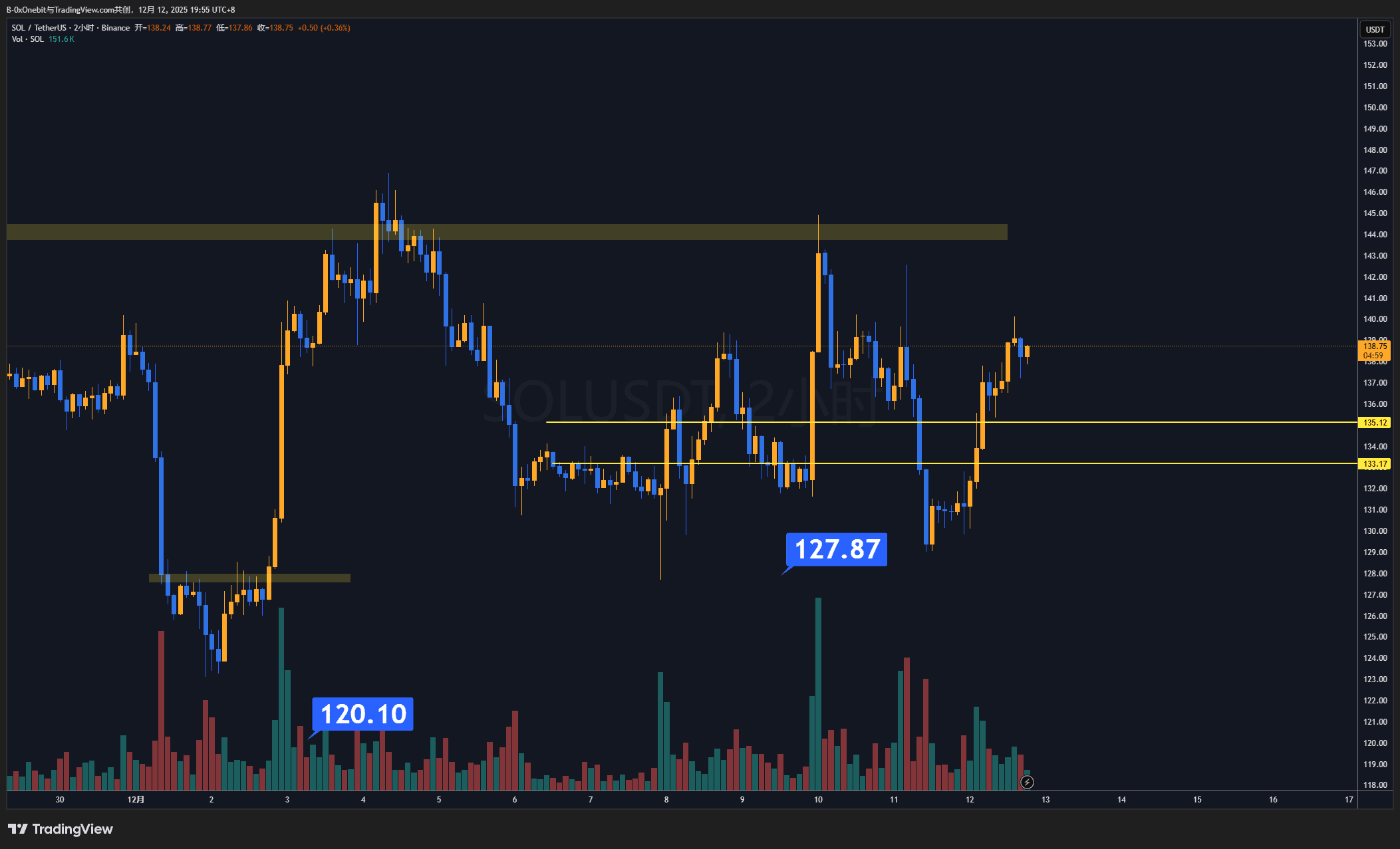The major resistance remains around 144, with a wide-ranging consolidation structure. Until a breakthrough occurs, treat it with a wide fluctuation mindset.