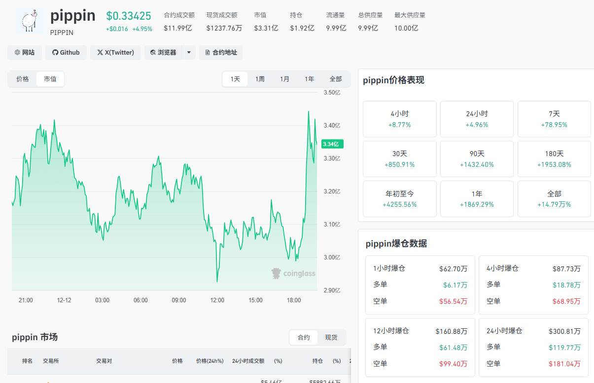 A small cryptocurrency with a market value of only 330 million, PIPPIN is staging a thrilling battle between bulls and bears! If you blindly chase the price now, your capital could very likely be halved within the next 24 hours!