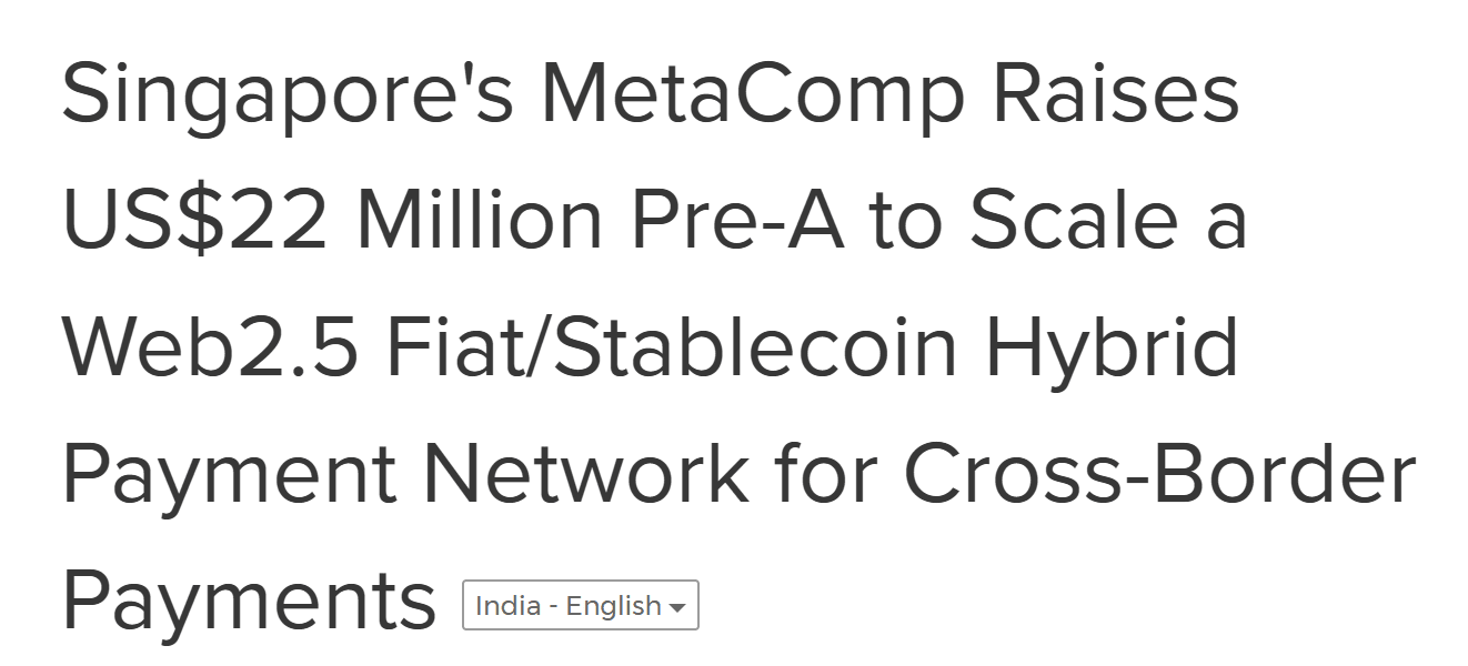 Singapore licensed stablecoin cross-border payment and asset management service provider MetaComp completes $22 million Pre-A financing