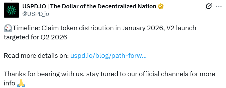 USPD announces the post-attack recovery plan for V1 and the reconstruction roadmap for V2