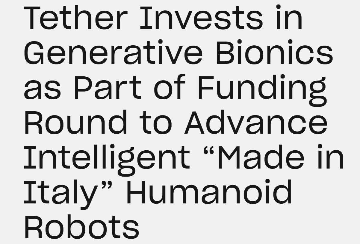 Robot project Generative Bionics completes $80 million financing, with Tether and others participating