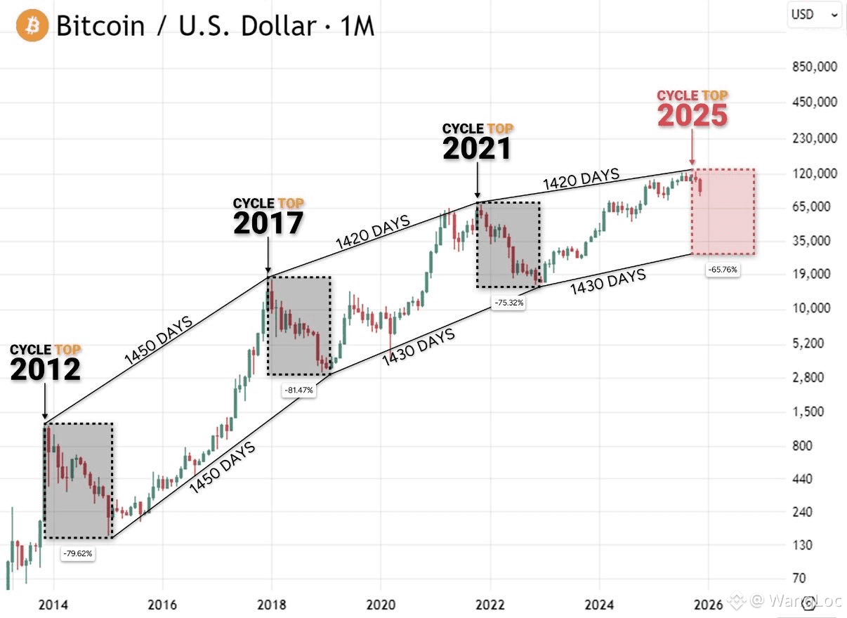 This chart suggests a #bitcoin cycle low around ~$25,000 in 2026 đ