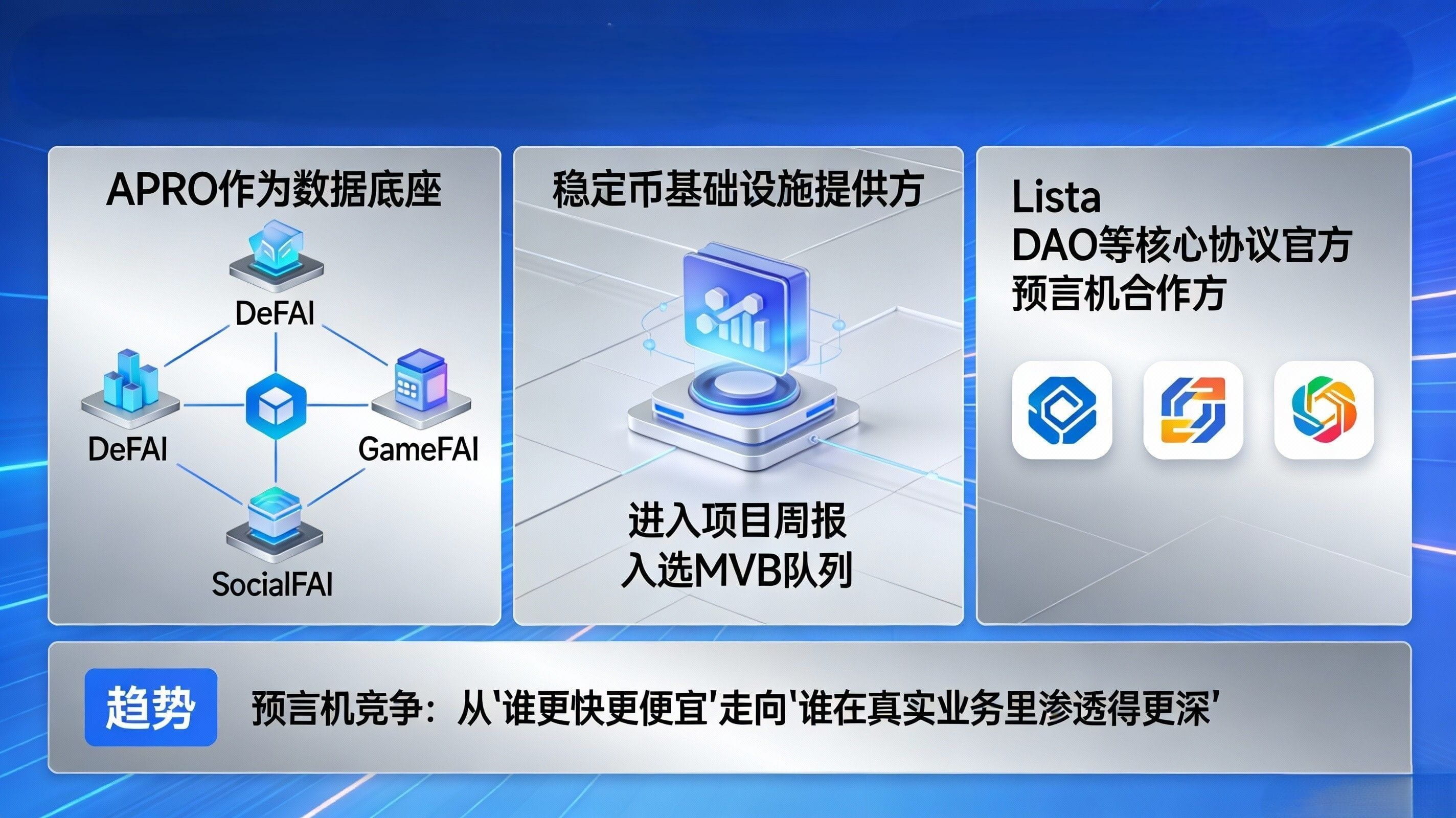 And 'real competition happens in mainnet businesses'; the most intuitive example is the core protocols of BNBFi like Lista DAO. Modular combinations like lending, staking, and CDP stablecoins essentially use oracles as a risk control hub: price stability determines whether the trigger for liquidation is reasonable, and data continuity in extreme market conditions determines whether the system will experience bad debt diffusion. Public reports mention that APRO has become one of the official oracle partners of Lista DAO, providing safer, more stable, and verifiable price feeds for its lending, staking, and other modules, covering the BNB Chain mainnet. You can understand this as an upgrade from 'technical benchmarking to business entry': when you can enter such liquidation-sensitive scenarios, your competitors are no longer PPTs, but mainnet volatility.