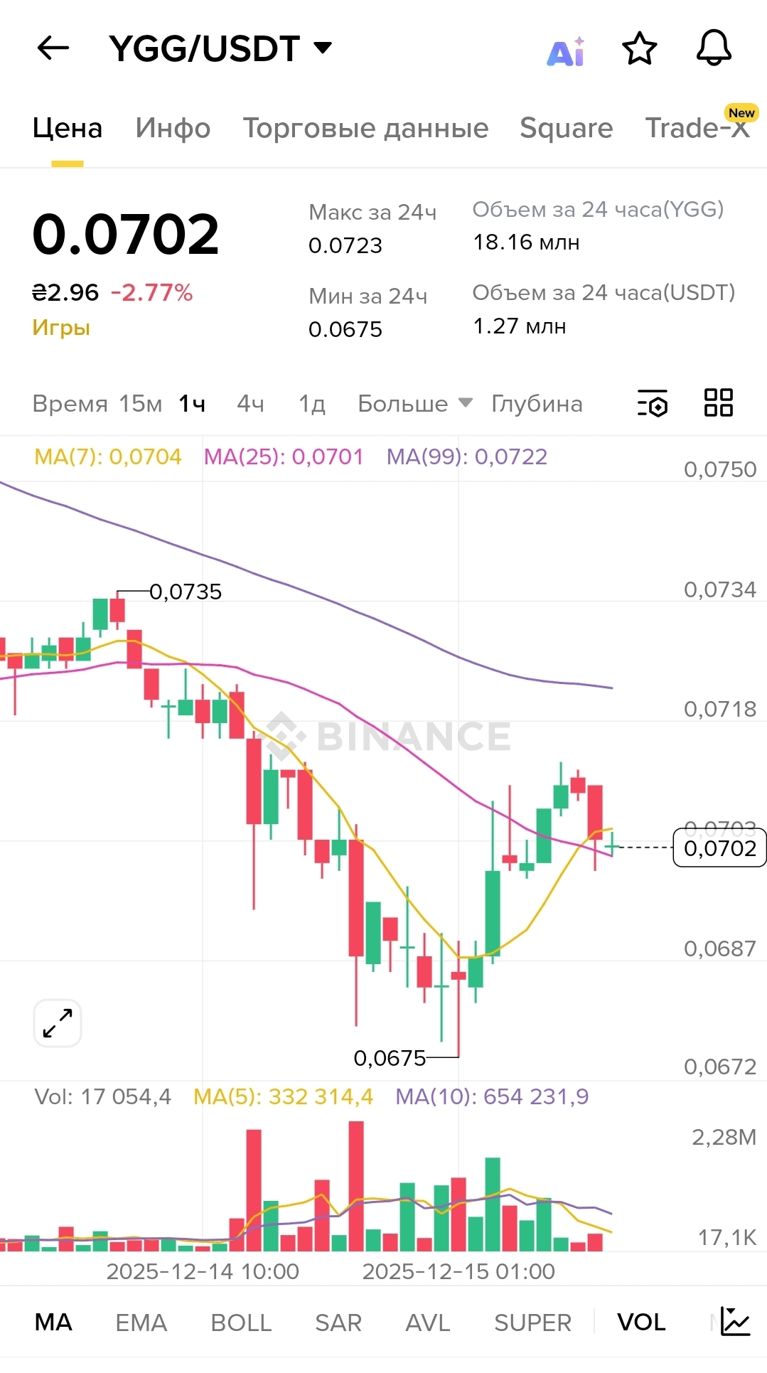 I opened the chart $YGG today, saw $0.0702 with a loss of 2.77%, and instead of the usual despair, I felt something different, some strange clarity of mind. Maybe because after months of red days, the brain just stops reacting to pain, or maybe because I finally started to understand the true picture of what is happening with @YieldGuildGames. The price is between $0.0675 and $0.0723 for the day, we are practically at the daily minimum, but if we step away from emotions and look at the technical picture soberly, there is something interesting to see.