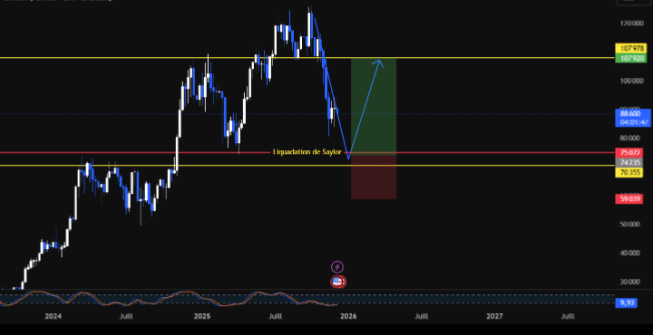 74K is not just a technical support. It is Saylor's level, the point where the largest corporate Bitcoin holder goes into loss. The market will likely go test it, if only to see who cracks.