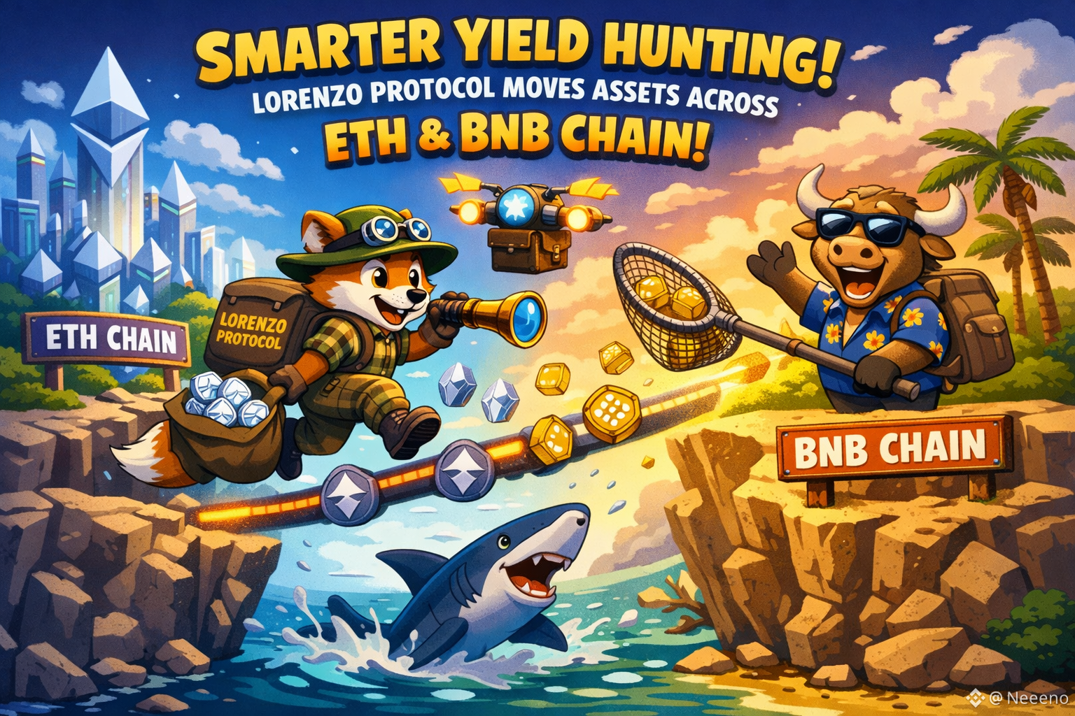 Crypto has a habit of changing the conversation when markets calm down. When prices stop racing, people start paying attention to what their assets are actually doing. Over the past couple of months, that shift has been obvious. Yield, not hype, has been creeping back into discussions, and not in the reckless way it did a few years ago. One project that keeps coming up in those conversations is @Lorenzo Protocol mostly because of how it moves capital between Ethereum and BNB Chain with a level of intention that feels different from the usual scramble.