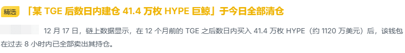 On-chain data confirms that a whale, which aggressively built positions shortly after HYPE's launch, has completely sold out within the past 8 hours after holding for a full 12 months. This is not short-term speculation; it is the exit of long-term investors. What does this indicate? Even the earliest and most optimistic supporters of the project are giving up, which is a heavy blow to market confidence and can easily trigger panic selling.