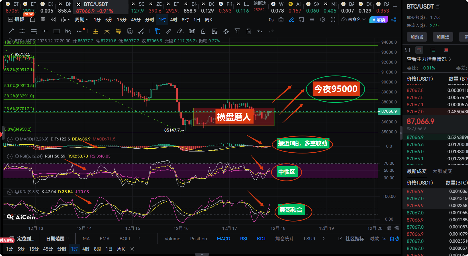 Someone asked, 'Will 85,000 break?' I said directly: No! This position is a key Fibonacci support level and a structural defense line for the low point in November. It has bounced back twice within three days without breaking, enough to show how strong the support is. But don't rush blindly; a few days ago, my fan Xiao Li told me, 'I chased 89,000 with a full position,' and now he asks every day whether to cut losses. I scolded him, 'Chasing highs and selling lows is always the fate of retail investors.' The real players are building positions in batches at 86,000, setting a stop-loss at 85,000, neither stubborn nor missing out—this is how to drink soup with institutions.