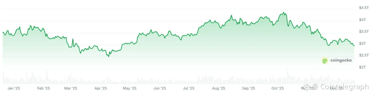 However, crypto markets are on track to end the year lower than when they began, with the total market capitalization falling more than 32% from its all-time high of $4.4 trillion in early October and almost 13% down from Jan. 1.