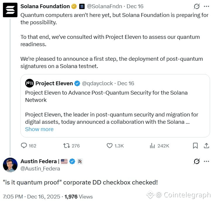 Solana has taken a similar posture through testing rather than deployment. In partnership with post-quantum security firm Project Eleven, the network recently ran a dedicated testnet using quantum-resistant signatures to assess whether such schemes can be integrated without undermining performance or compatibility.