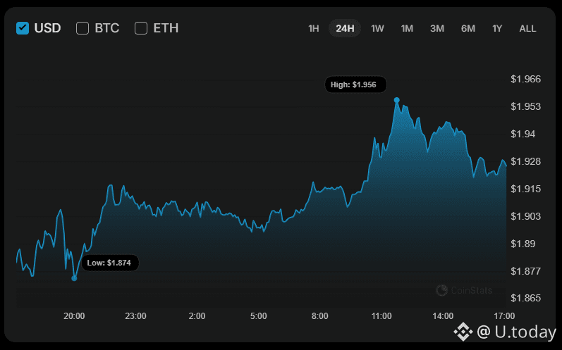 On the hourly chart, the rate of XRP might have set a local resistance of $1.9588. However, if the daily bar closes near that mark, traders may see a level breakout, followed by further growth to the $2 zone.