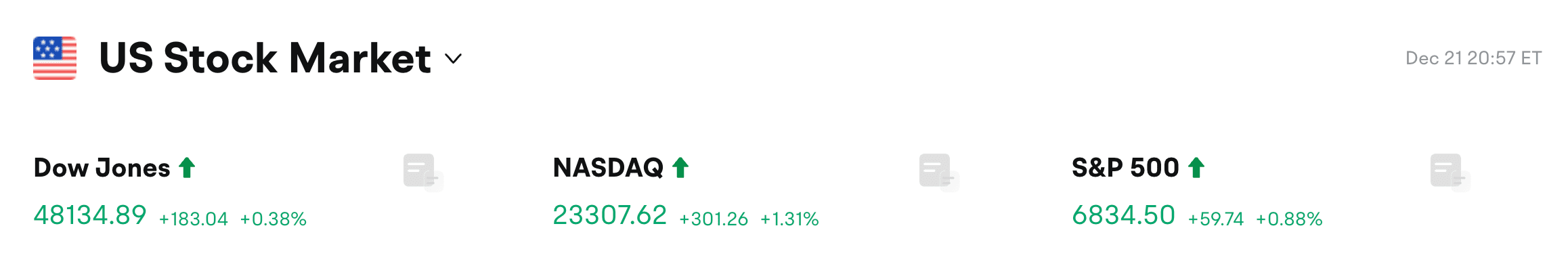 2. The three major U.S. stock indexes showed mixed results, with the Dow up 0.38%, the S&P 500 up 0.88%, and the Nasdaq Composite up 1.31%. In addition, Nvidia (NVDA) rose 3.93%, Circle (CRCL) rose 6.35%, and MicroStrategy (MSTR) rose 4.16%.