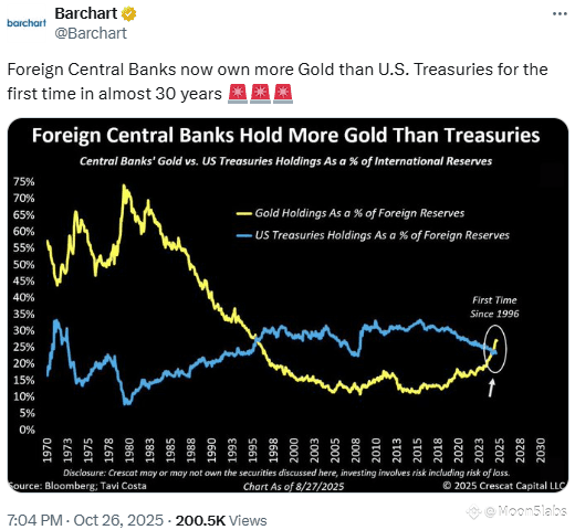For the first time in three decades, the foundation of the global financial system is shifting. Foreign central banks now hold more gold than U.S. Treasury bonds, marking the biggest transfer of confidence from paper to metal since the 1990s.