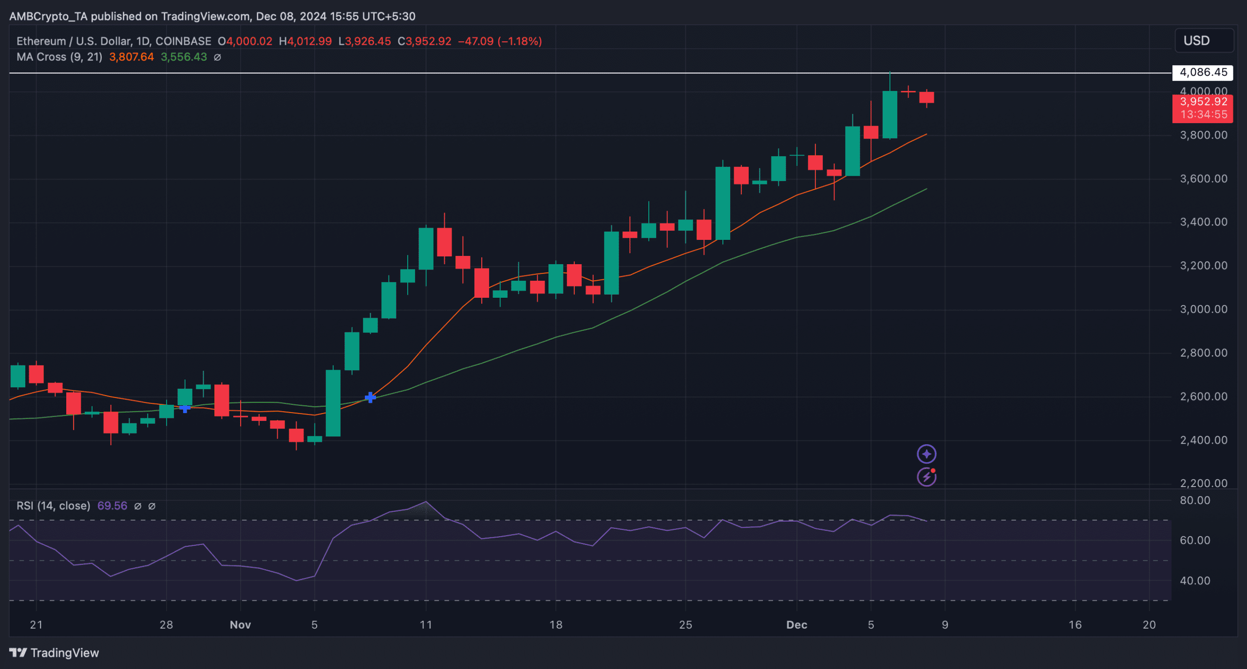 Ethereum [ETH] ha estado luchando por superar la barrera de $4k durante bastante tiempo, ya que está siendo rechazada cerca de la resistencia.