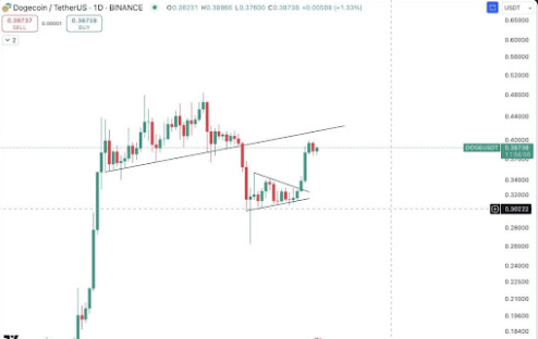 Los analistas sugieren que Dogecoin podría pronto volver a probar el nivel de resistencia de $0.41. Un despegue por encima de este umbral podría allanar el camino para que DOGE desafíe su anterior máximo histórico (ATH) de $0.75 o incluso lo supere.Soporte en $0.30 Manteniéndose Firme: