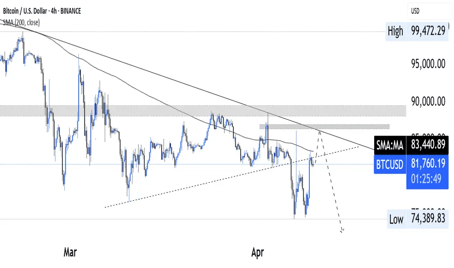 Estructura Actual: BTC está comerciando por debajo de la resistencia, formando máximos más bajos—una señal de posible debilidad continua.