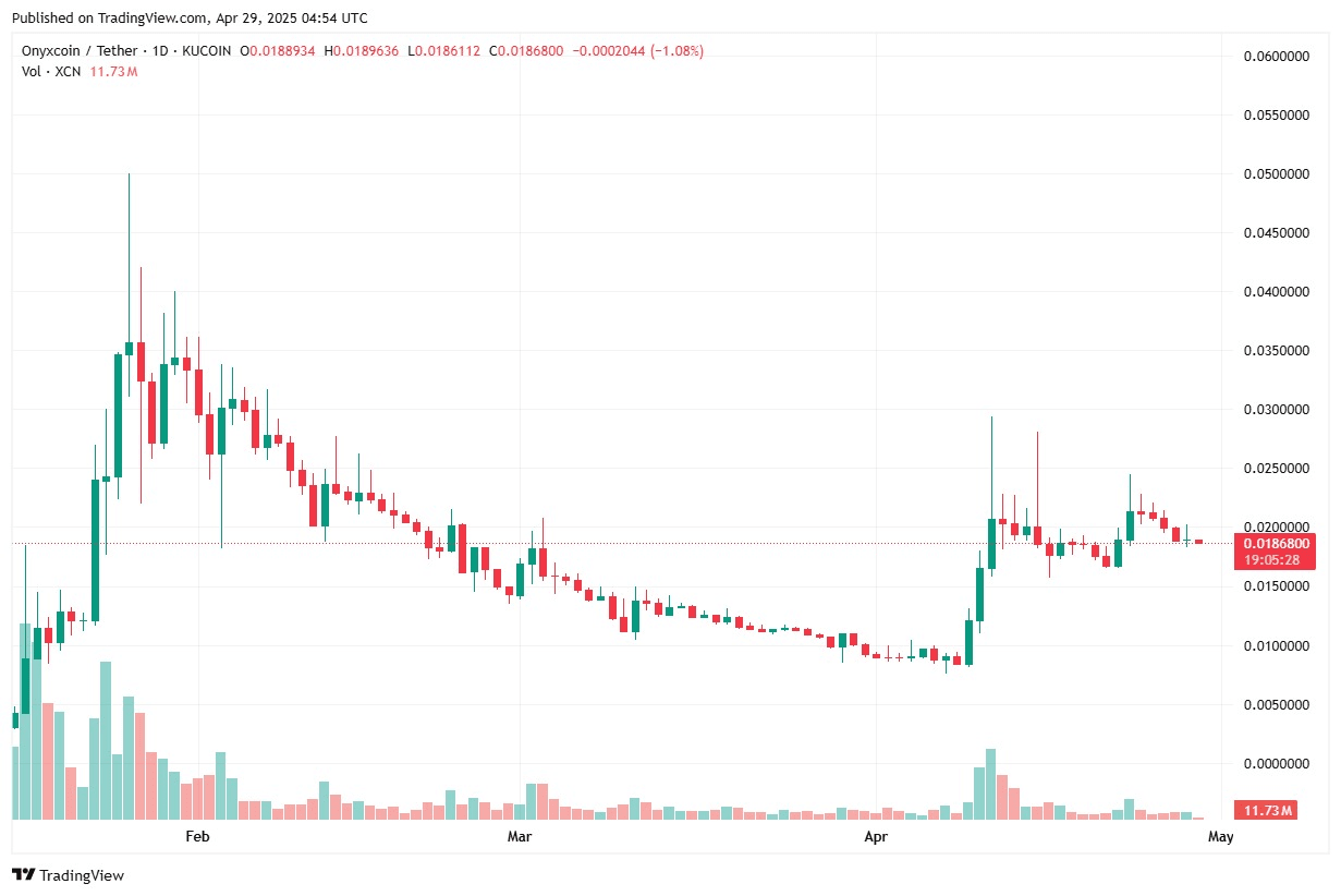 Gráfico diario de XCN/USD – Publicado en TradingView, 29 de abril de 2025