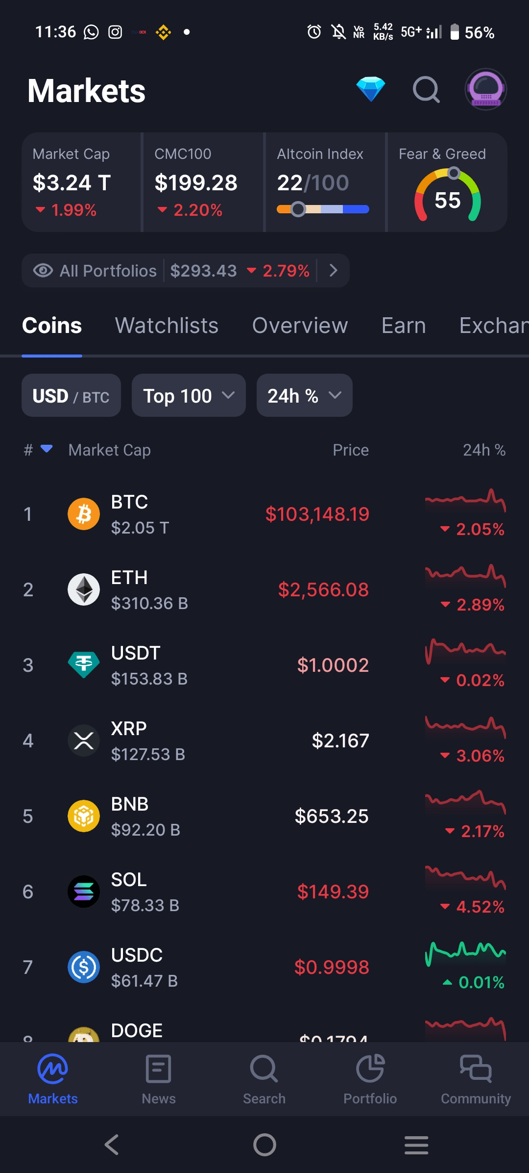 1. Instantánea del Mercado: La Mayor Parte de las Monedas en Declive