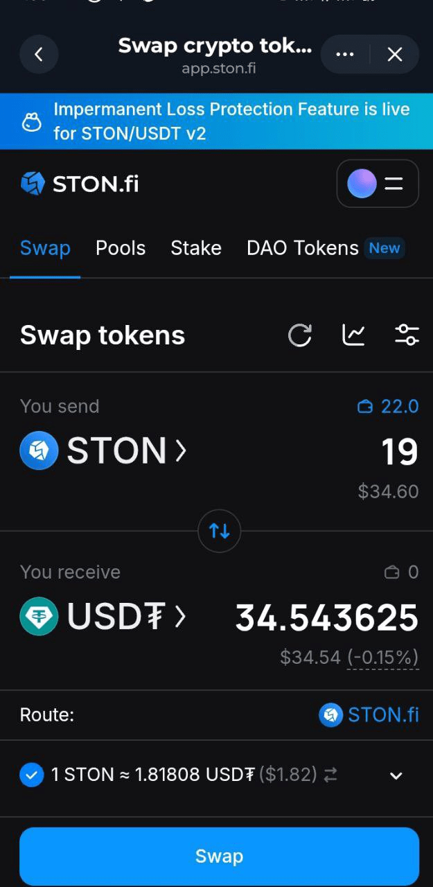 Eso es todo. Intercambié $STON por USDT en menos de 10 segundos, una de las experiencias DEX más rápidas que he tenido.