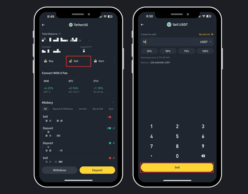 Ingresa la cantidad de criptomonedas que deseas vender y en la parte inferior toca en 'Vender' nuevamente.