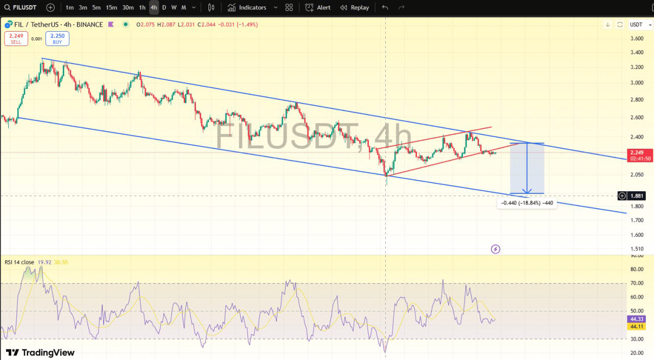 FIL ya ha roto por debajo de su soporte de línea de tendencia, y ahora es probable que vuelva a probar ese nivel antes de continuar con su movimiento a la baja. Técnicamente, se espera más caída, así que evita usar un alto apalancamiento y gestiona tu riesgo con cuidado.
