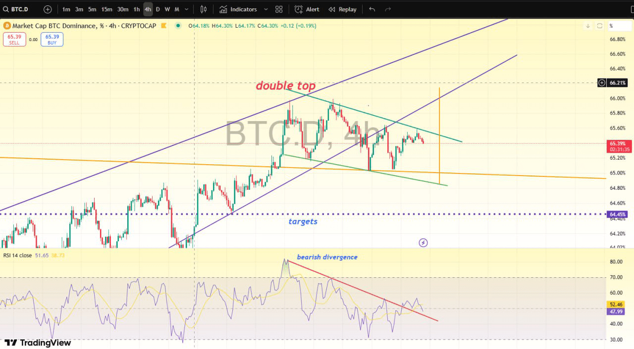 La dominancia de Bitcoin acaba de rebotar en la resistencia de la línea de tendencia, abriendo la puerta a una rotación selectiva de altcoins. Elige tus configuraciones con cuidado y mantén una gestión de riesgos sólida; esto no es un casino.
