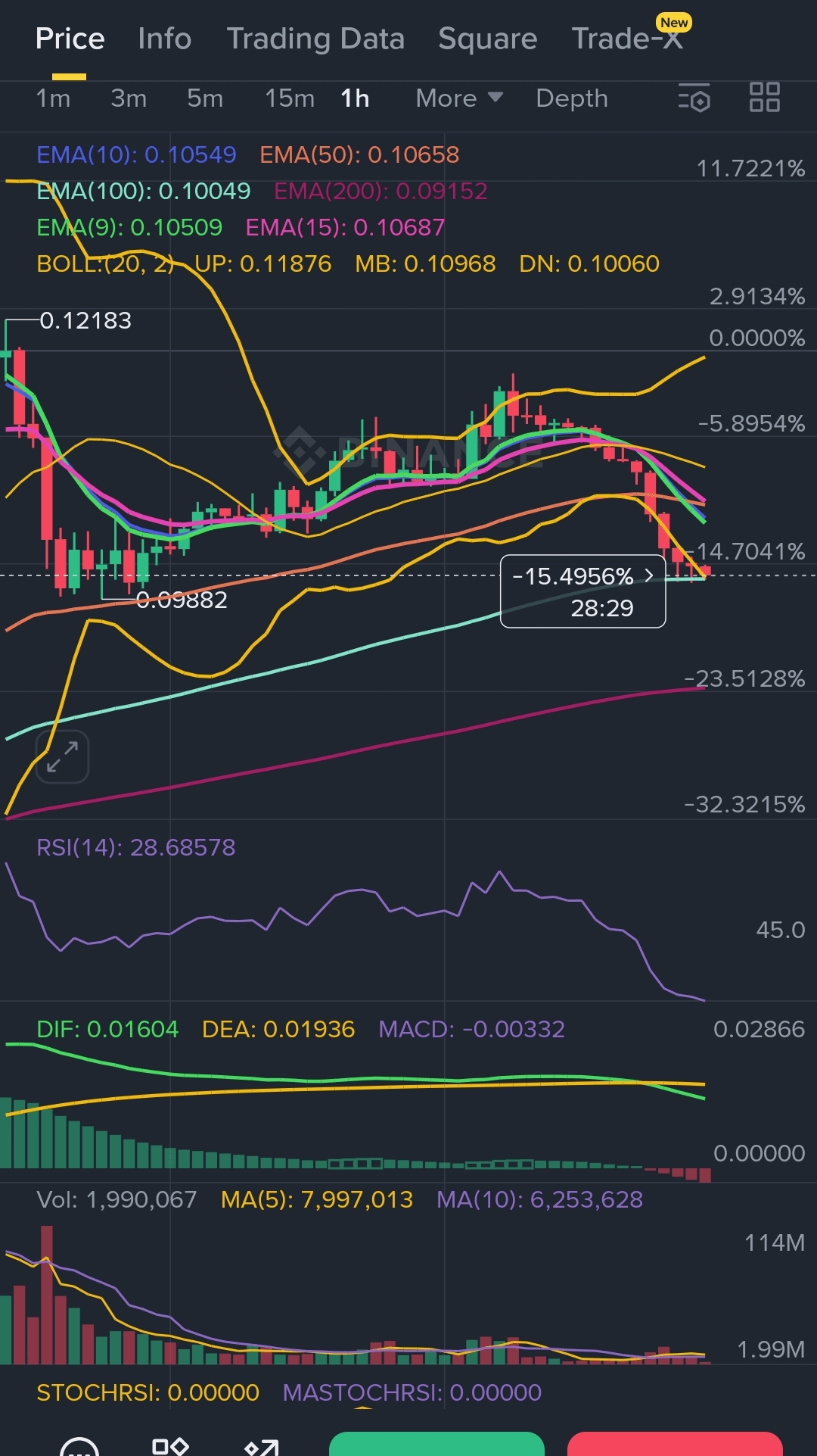 · Bandas de Bollinger (20,2): El precio está tocando la BANDA INFERIOR ($0.10011). Históricamente, esta ha sido una zona para rebotes. ¡La "compresión" está en marcha!