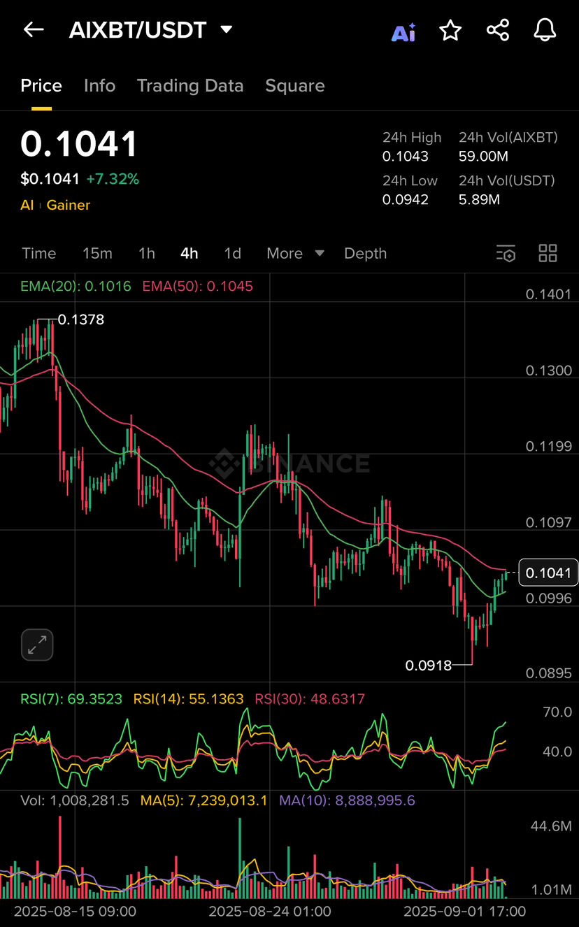 BOS: la confirmación sería un cierre limpio en 4H por encima de 0.1045 (EMA50) o idealmente 0.1097.