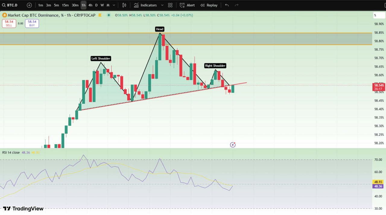 Mientras tanto, BTC.D está formando un patrón bajista, lo que indica que las altcoins pueden ver un movimiento ascendente a corto plazo.