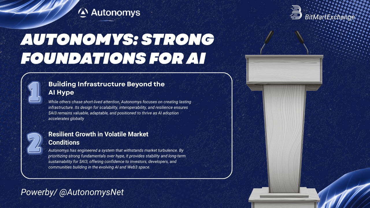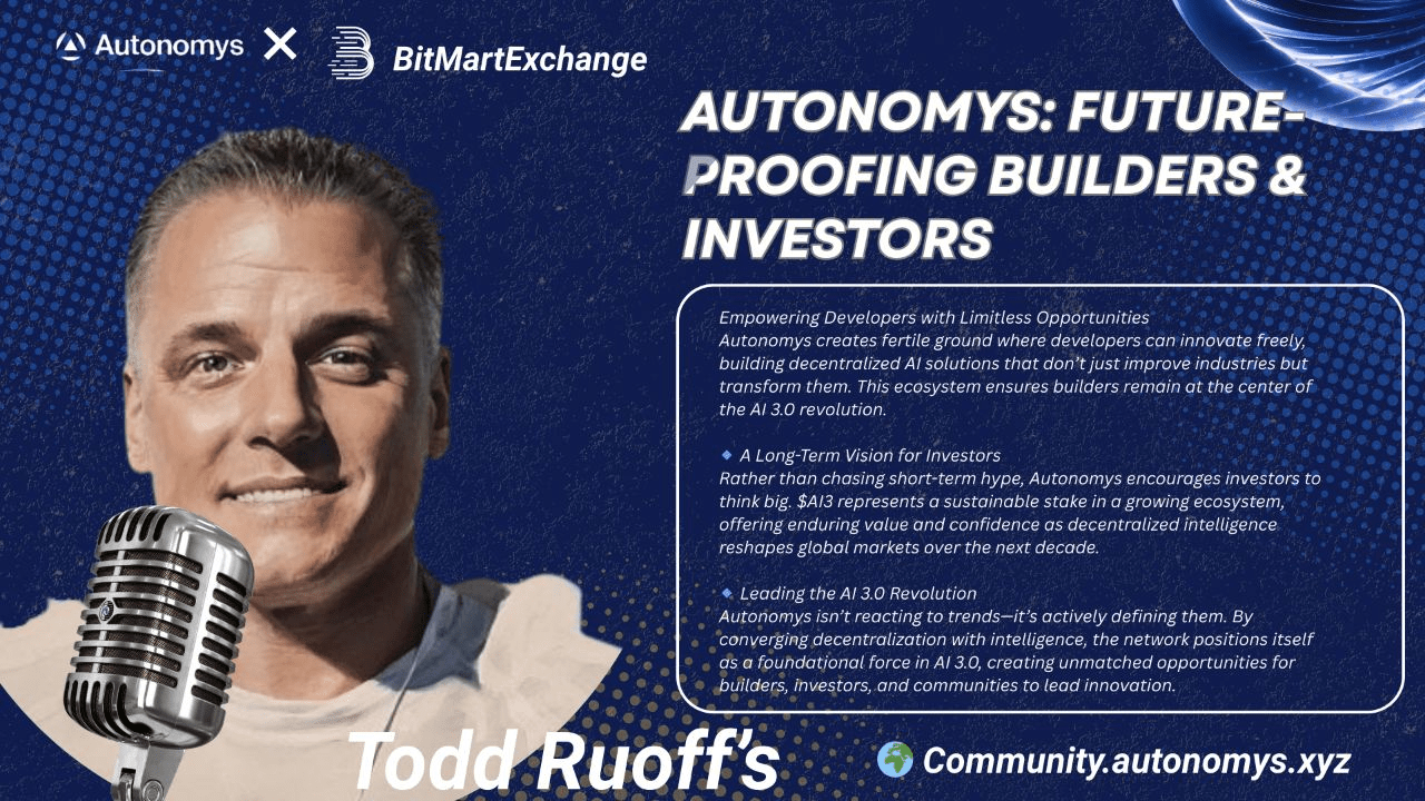 Para los inversores, la perspectiva de Todd fue refrescante. Mientras muchos proyectos prometen “ganancias rápidas,” Autonomys está diseñando una hoja de ruta que recompensa la paciencia y la visión. Respaldar a $AI3 significa invertir en un proyecto que no solo persigue tendencias, sino que las establece. Se trata de ser parte de algo que podría transformar industrias como la salud, las finanzas, la logística y la gobernanza con soluciones de IA descentralizadas.