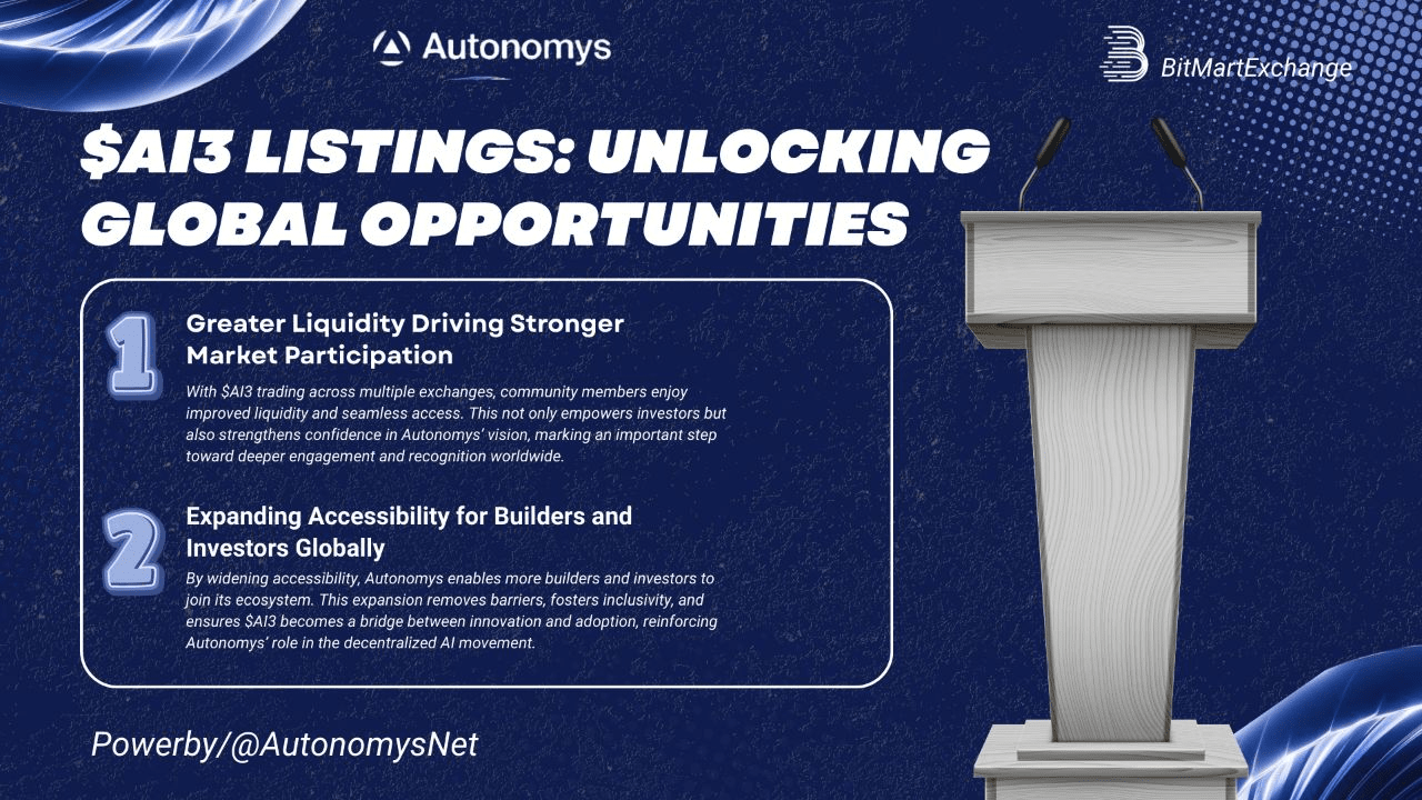Ahora que $AI3 está listado en múltiples intercambios, el ecosistema ha pasado a un nuevo nivel. Un token listado es más que solo “comerciabilidad.” Significa liquidez, accesibilidad y credibilidad. Para los inversores, es más fácil unirse al movimiento. Para los creadores, es prueba de que @AutonomysNet está siendo reconocido a nivel mundial.