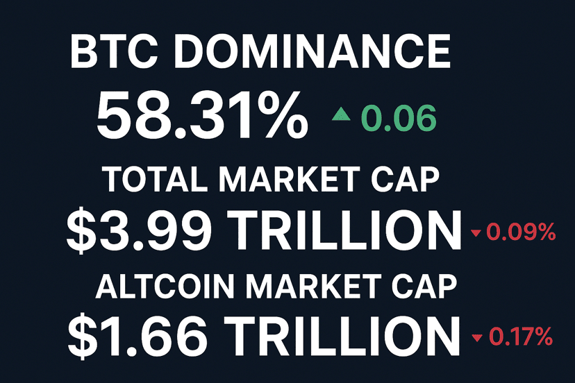 El mercado de criptomonedas está presenciando un cambio sutil pero notable en el impulso. La dominancia de Bitcoin ha subido al 58.31%, marcando un ligero aumento de +0.06, reafirmando el dominio de Bitcoin como el activo digital líder.