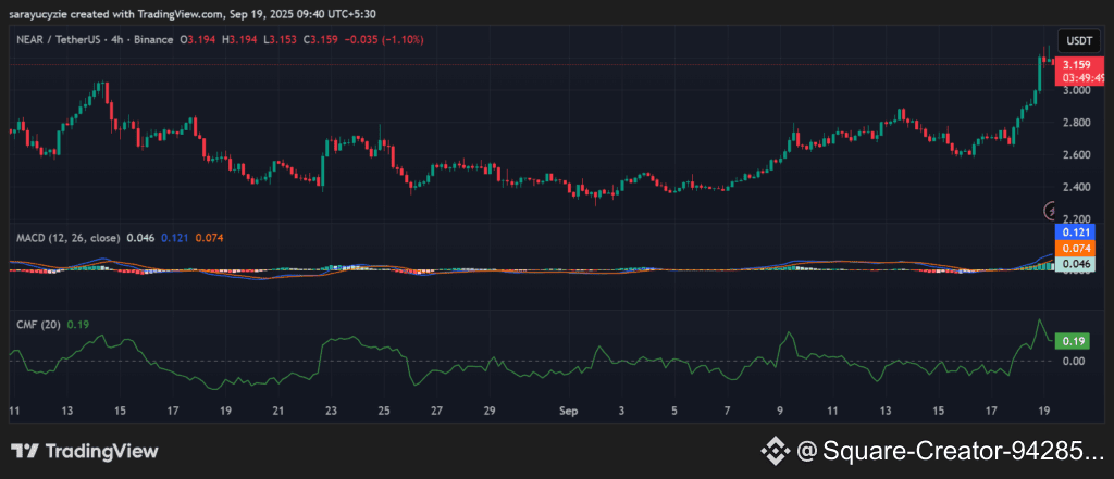 يقع خط تقارب وتباعد المتوسط المتحرك (MACD) لبروتوكول NEAR فوق خط الإشارة، مما يشير إلى زخم صعودي في السوق. كما أنه من المحتمل أن يشهد المزيد من الارتفاع. علاوة على ذلك، فإن مؤشر Chaikin Money Flow (CMF) لـ NEAR عند 0.19 إيجابي، مما يشير إلى أن ضغط الشراء يفوق ضغط البيع. يتدفق المال إلى الأصل، مما يشير إلى تراكم.
