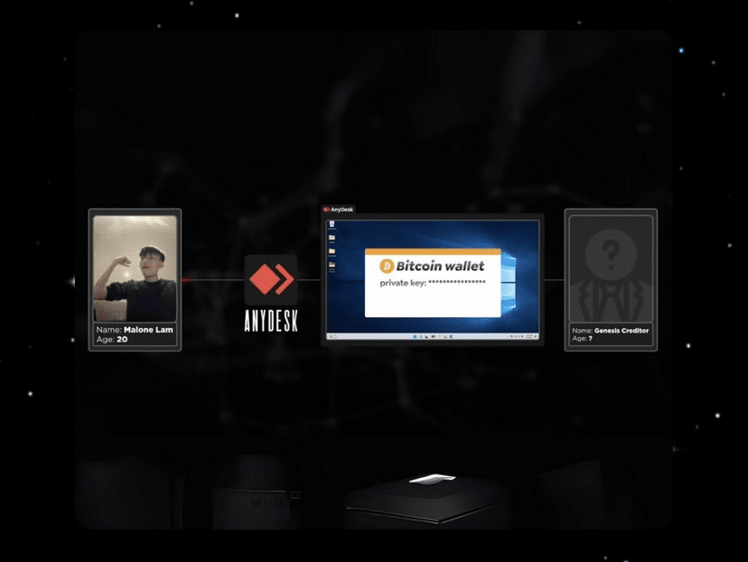 Finalmente, lo presionaron para que instalara AnyDesk. Pantalla expuesta, claves privadas reveladas: su Bitcoin estaba ahora en sus manos.
