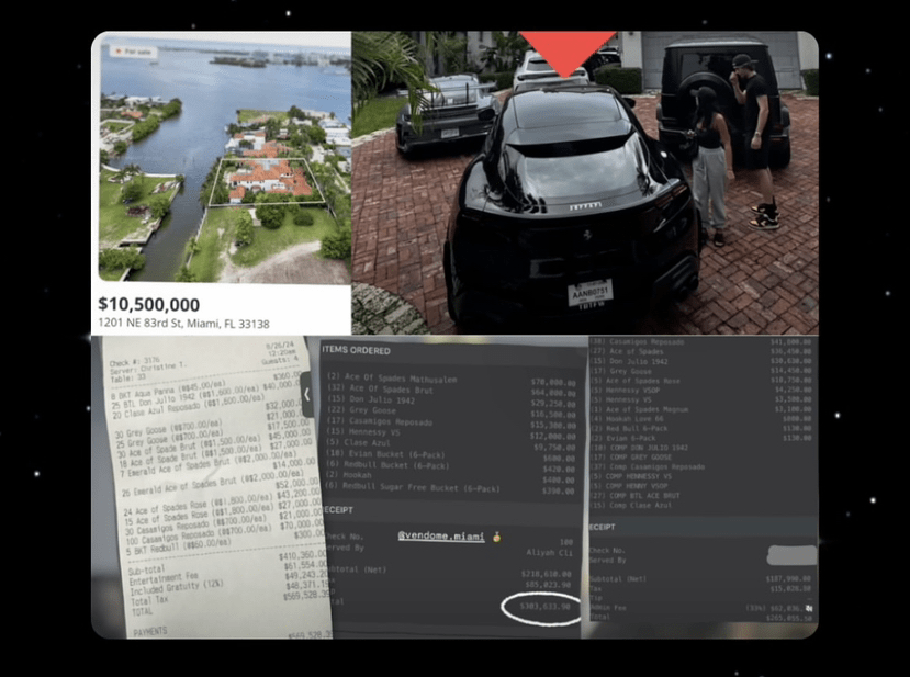 Malone se volvió loco. Noches de $500,000 en clubes, mansión de $10.5M en Miami, garaje desbordado de supercoches.