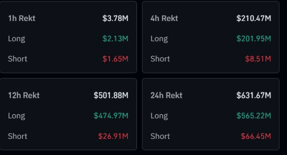 Alrededor de $631 millones fueron liquidadas en 24 horas.