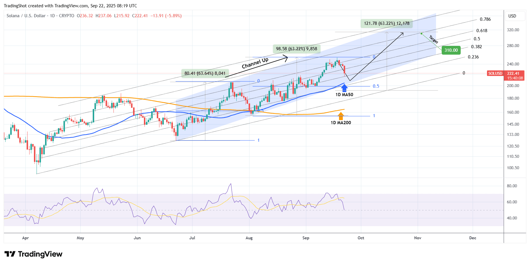Solana (SOLUSD) ha estado negociando dentro de un Canal Ascendente desde el mínimo del 22 de junio, que se remonta aún más atrás en un Canal Ascendente de Fibonacci que comenzó en el fondo del mercado del 07 de abril.