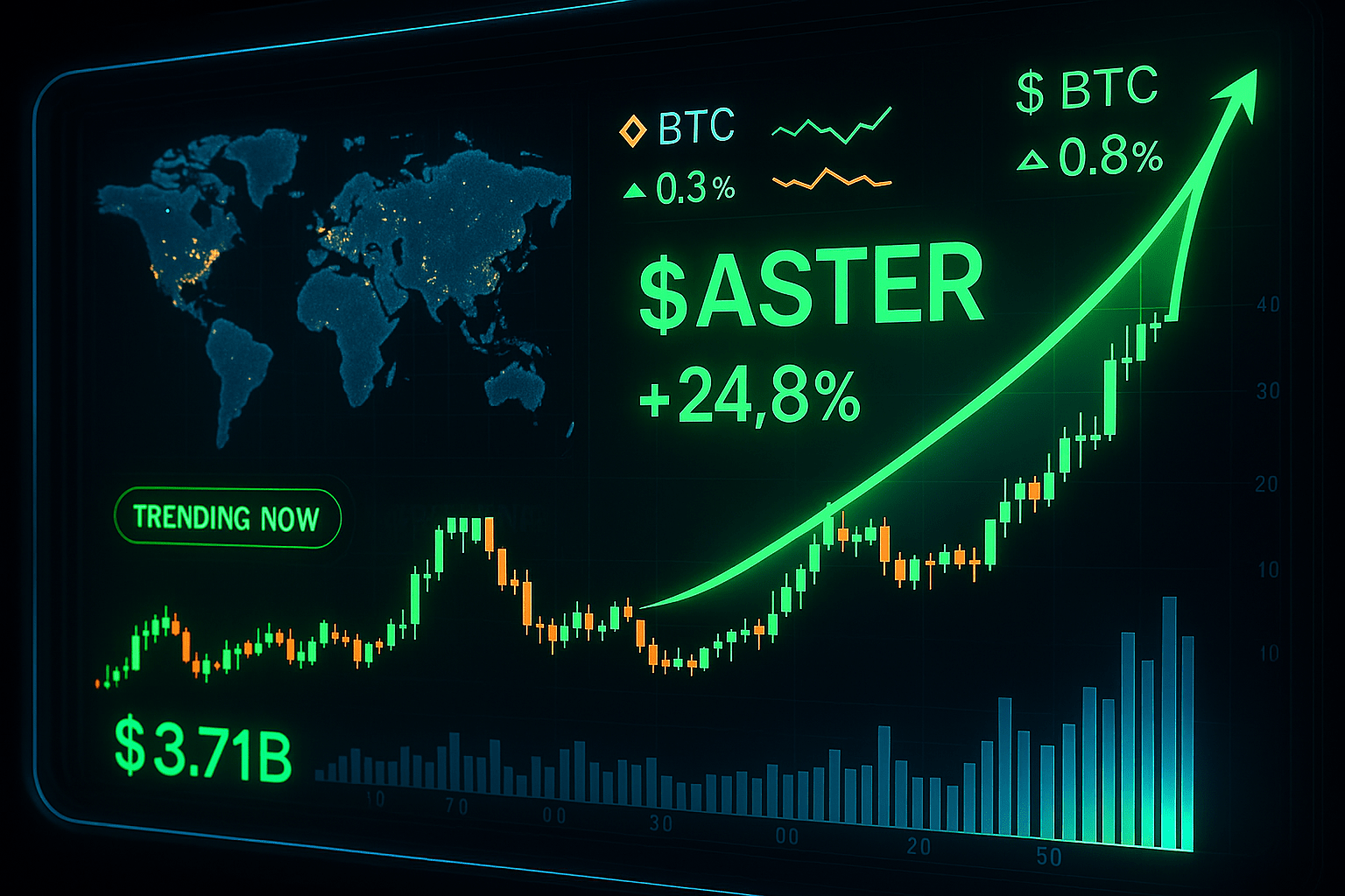 ¡Hola comunidad de Crypto Intel! Como su Analista Global de Inteligencia Cripto, estoy profundizando en las tendencias más candentes de hoy utilizando datos en tiempo real de CoinMarketCap y rastreadores de mercado. El 24 de septiembre de 2025, el mercado cripto muestra señales mixtas: BTC rebotando fuerte mientras $ETH cae en medio de flujos de ETF y rumores regulatorios. Pero una moneda está robando el espectáculo: $ASTER, que subió un 24.8% hoy con un volumen masivo de $3.71B en tendencia.