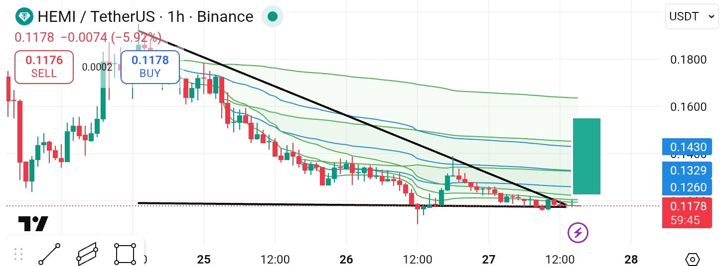 Como HEMI está a punto ❗️ de romper el triángulo simétrico en el marco de tiempo diario📈.