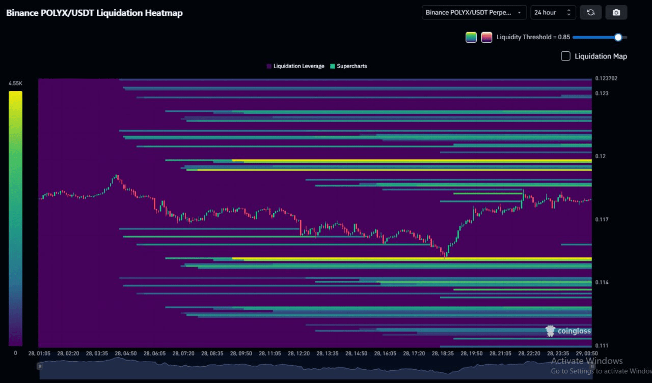 El mapa de calor de liquidación de CoinGlass de 24 horas muestra liquidez en ambos lados. Espero que primero capte la liquidez a la baja y luego vuelva a subir.