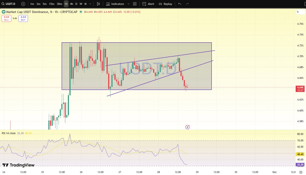 USDT.D parece alcista en el marco de tiempo más corto, lo que sugiere que el mercado puede bajar primero y luego volver a subir. Asegúrate de gestionar tus propios riesgos.