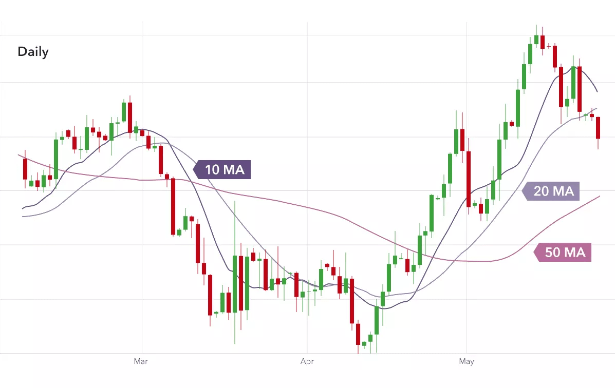 Hay cientos de indicadores disponibles actualmente, con analistas trabajando constantemente en nuevos cálculos para intentar obtener una ventaja en los mercados. Examinar todos estos en detalle está más allá del alcance de este curso, pero echaremos un vistazo rápido a uno de los indicadores más populares y utilizados: la media móvil.
